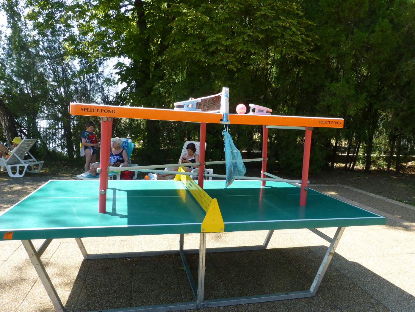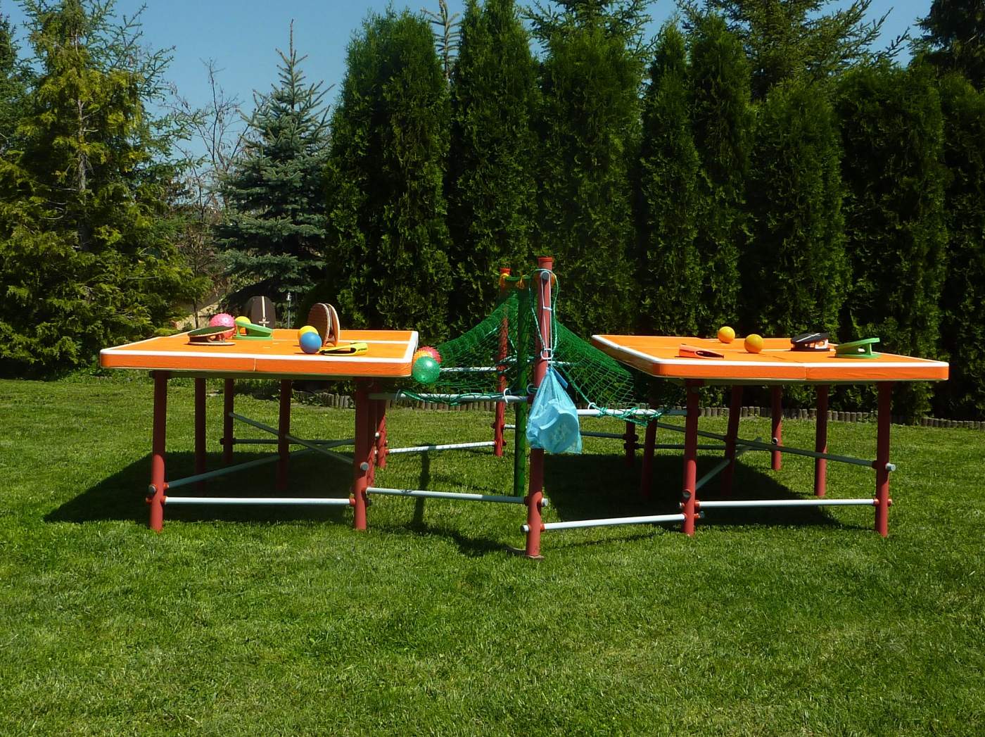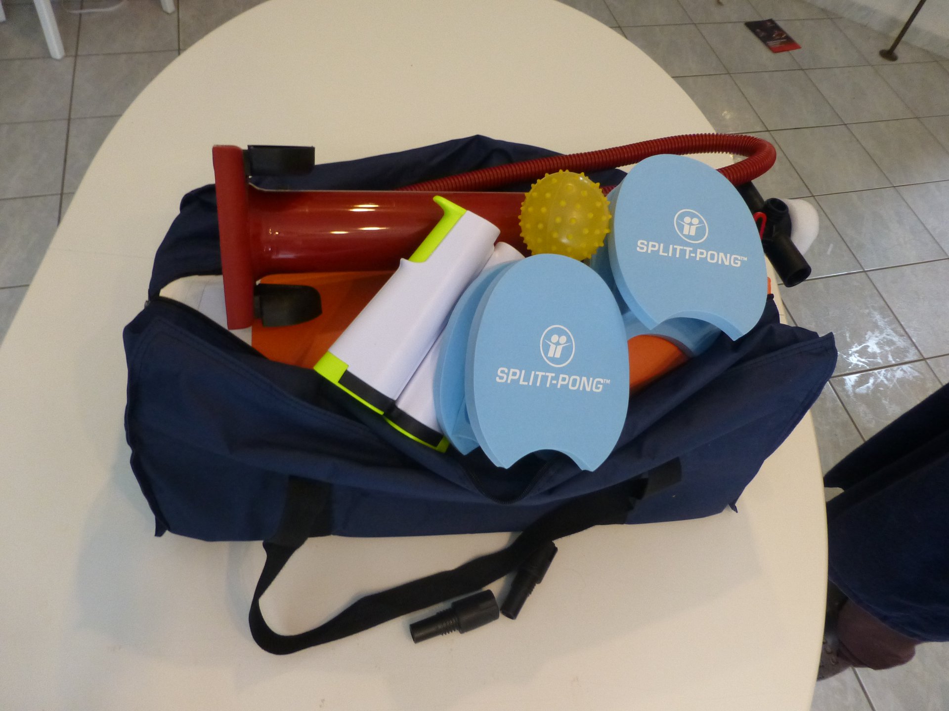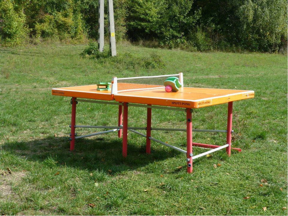 asztalon üthetjük a szivacs, vagy gumi labdákat. A SplitT-Pong "PROFI" készlet részei: 8 db 100cmX60cm méretű EPS asztalelem, nagy háló, 2db kesztyűütő, 4 db labda, műanyag csövekből álló lábszerkezet.