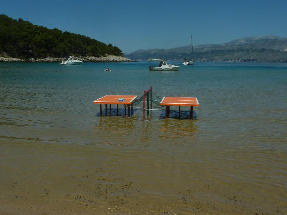 A láb nélküli úszó SplitT-Pong "SWIM" asztal, amely szintén 200 cm hosszú és 120 cm széles 4 db 100 cm X 60 cm -es nagy keménységű expandált polisztirol (EPS) elemekből lehet összeállítani 1 perc alatt. Könnyű és egy átlagos családi autóban szállítható. Otthoni medencékbe, víz melletti nyaralókba ajánljuk. A SplitT-Pong "SWIM" készlet részei: 4 db 100cmX60cm méretű EPS asztalelem, háló, 2db kesztyűütő, 4 db labda.  A készlet rendelési kódja SP-SWIM.  Ára: 59544 Ft + ÁFA = 75.620 Ft